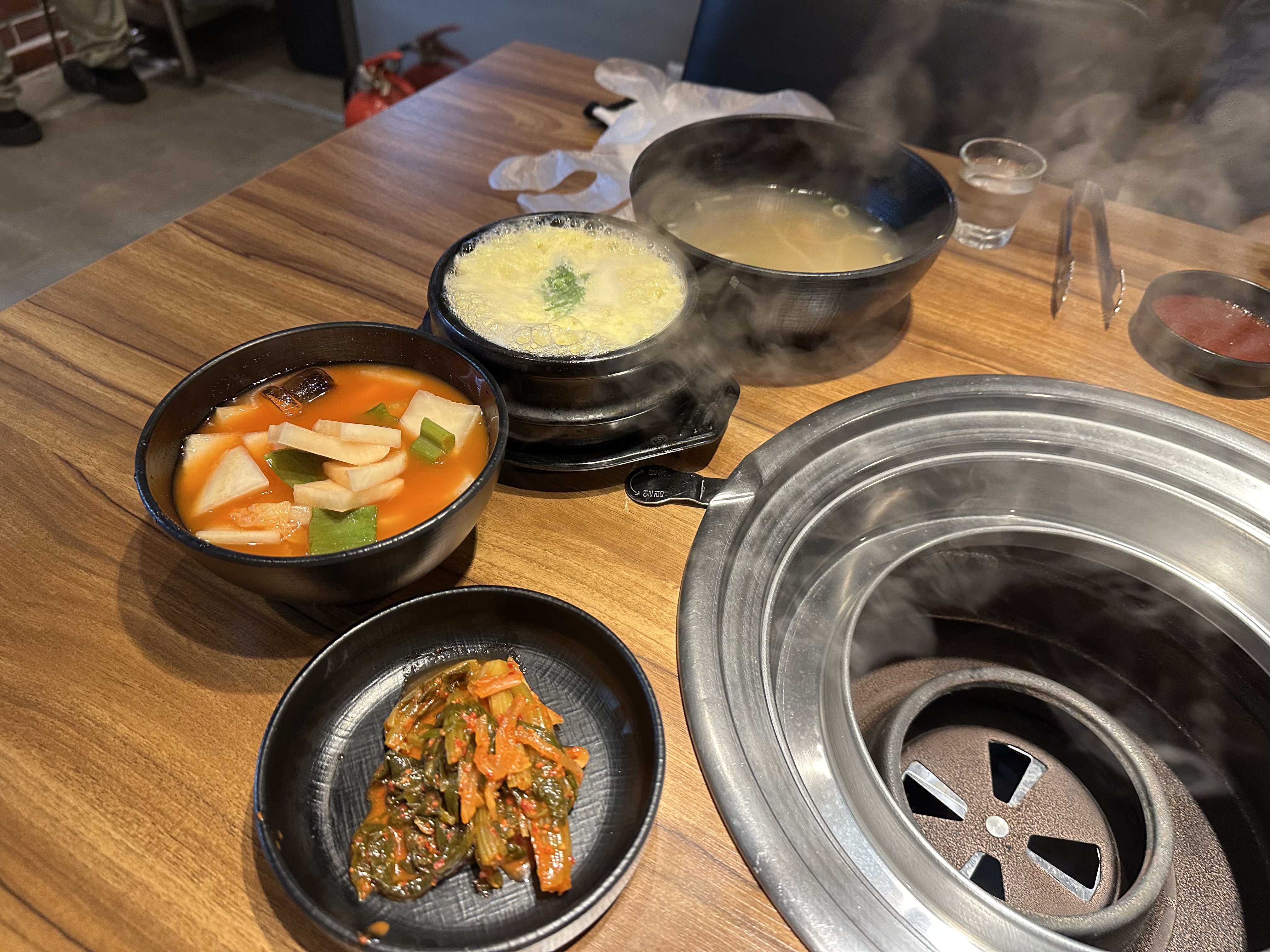 기본 반찬으로는 황태국, 계란찜, 동치미, 갓김치가 나와요.